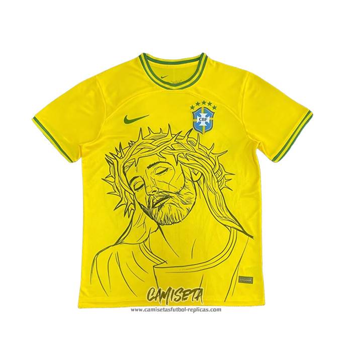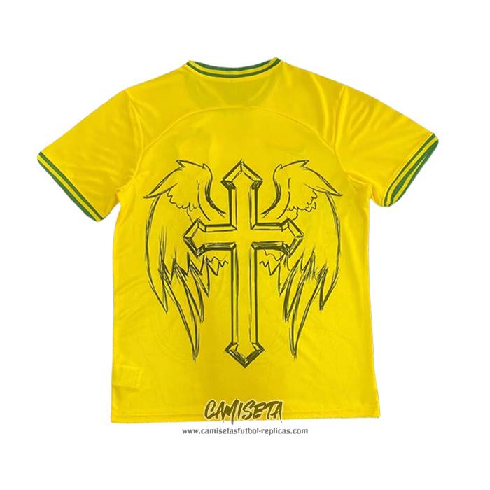 Camiseta Brasil Jesus 2025 Amarillo Tailandia esta confeccionada con un tejido transpirable que repele el sudor para mantenerte fresco, seco y cómodo dentro y fuera de la cancha. Una replicas camisetas futbol que puedes usar a diario, jugar al fútbol o disfrutar de los partidos con tus amigos sin problemas.