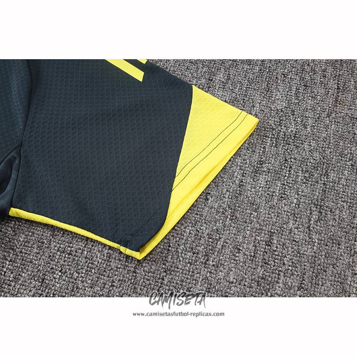Camiseta de Entrenamiento Real Madrid 2025-2026 Amarillo Negro esta confeccionada con un tejido transpirable que repele el sudor para mantenerte fresco, seco y cómodo dentro y fuera de la cancha. Una replicas camisetas futbol que puedes usar a diario, jugar al fútbol o disfrutar de los partidos con tus amigos sin problemas.