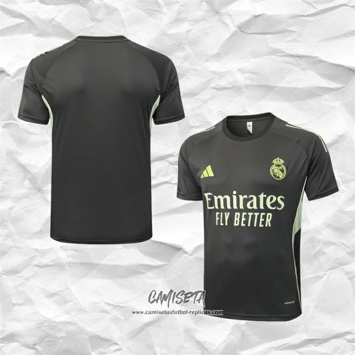 Camiseta de Entrenamiento Real Madrid 2025-2026 Gris Verde esta confeccionada con un tejido transpirable que repele el sudor para mantenerte fresco, seco y cómodo dentro y fuera de la cancha. Una replicas camisetas futbol que puedes usar a diario, jugar al fútbol o disfrutar de los partidos con tus amigos sin problemas.