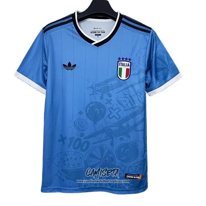 Camiseta Italia Special 2025 Azul Tailandia esta confeccionada con un tejido transpirable que repele el sudor para mantenerte fresco, seco y cómodo dentro y fuera de la cancha. Una replicas camisetas futbol que puedes usar a diario, jugar al fútbol o disfrutar de los partidos con tus amigos sin problemas.