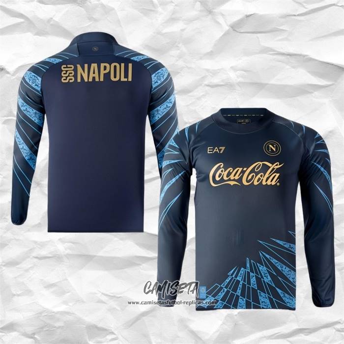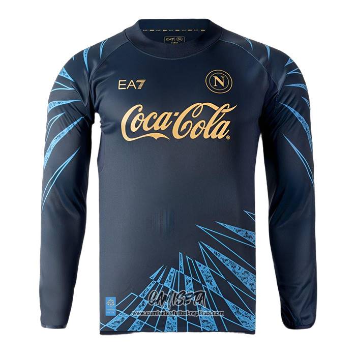 Camiseta Napoli Special 2025-2026 Manga Larga Azul Oscuro esta confeccionada con un tejido transpirable que repele el sudor para mantenerte fresco, seco y cómodo dentro y fuera de la cancha. Una replicas camisetas futbol que puedes usar a diario, jugar al fútbol o disfrutar de los partidos con tus amigos sin problemas.