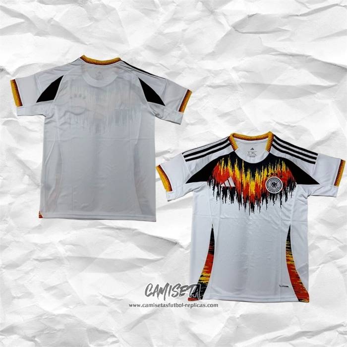 Camiseta Pre Partido del Alemania 2026 Blanco esta confeccionada con un tejido transpirable que repele el sudor para mantenerte fresco, seco y cómodo dentro y fuera de la cancha. Una replicas camisetas futbol que puedes usar a diario, jugar al fútbol o disfrutar de los partidos con tus amigos sin problemas.