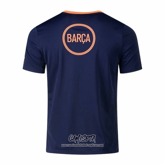 Camiseta Pre Partido del Barcelona 2025-2026 Azul Naranja esta confeccionada con un tejido transpirable que repele el sudor para mantenerte fresco, seco y cómodo dentro y fuera de la cancha. Una replicas camisetas futbol que puedes usar a diario, jugar al fútbol o disfrutar de los partidos con tus amigos sin problemas.