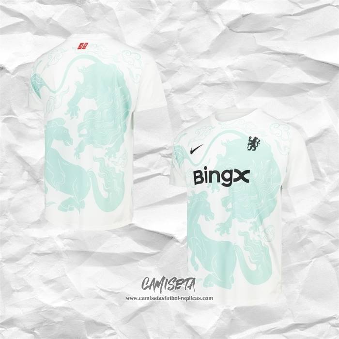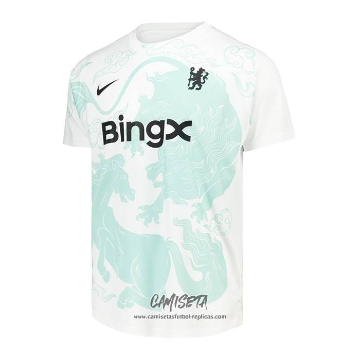 Camiseta Pre Partido del Chelsea 2025-2026 Blanco Verde esta confeccionada con un tejido transpirable que repele el sudor para mantenerte fresco, seco y cómodo dentro y fuera de la cancha. Una replicas camisetas futbol que puedes usar a diario, jugar al fútbol o disfrutar de los partidos con tus amigos sin problemas.