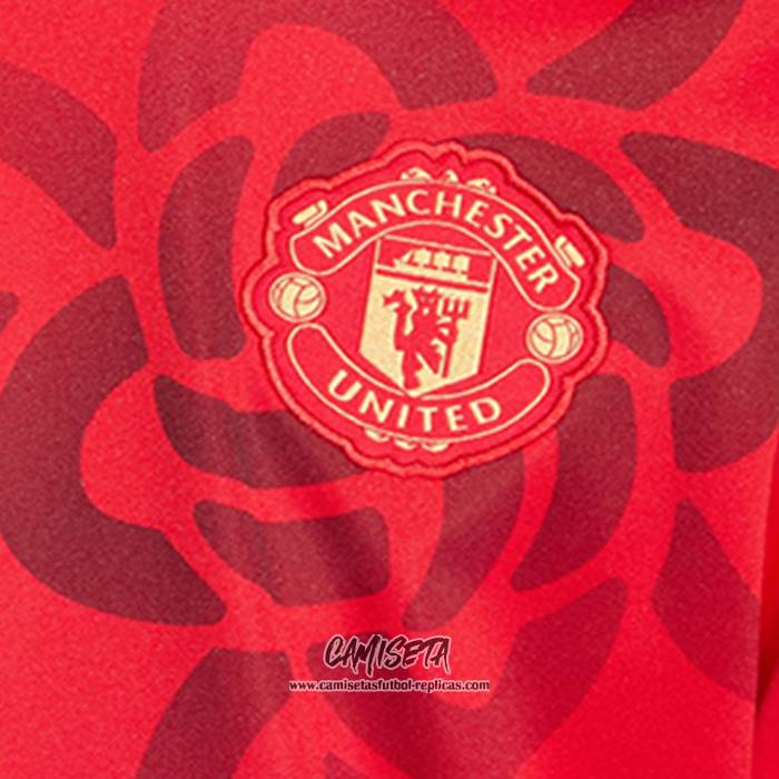 Camiseta Pre Partido del Manchester United 2025-2026 Rojo esta confeccionada con un tejido transpirable que repele el sudor para mantenerte fresco, seco y cómodo dentro y fuera de la cancha. Una replicas camisetas futbol que puedes usar a diario, jugar al fútbol o disfrutar de los partidos con tus amigos sin problemas.