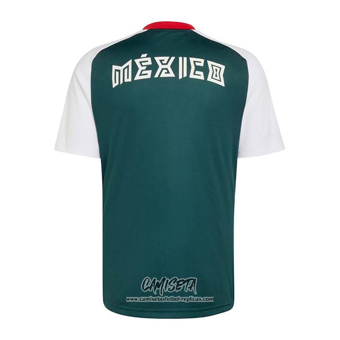 Camiseta Pre Partido del Mexico 2026 Verde Blanco esta confeccionada con un tejido transpirable que repele el sudor para mantenerte fresco, seco y cómodo dentro y fuera de la cancha. Una replicas camisetas futbol que puedes usar a diario, jugar al fútbol o disfrutar de los partidos con tus amigos sin problemas.