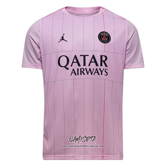 Camiseta Pre Partido del Paris Saint-Germain 2025-2026 Rosa esta confeccionada con un tejido transpirable que repele el sudor para mantenerte fresco, seco y cómodo dentro y fuera de la cancha. Una replicas camisetas futbol que puedes usar a diario, jugar al fútbol o disfrutar de los partidos con tus amigos sin problemas.
