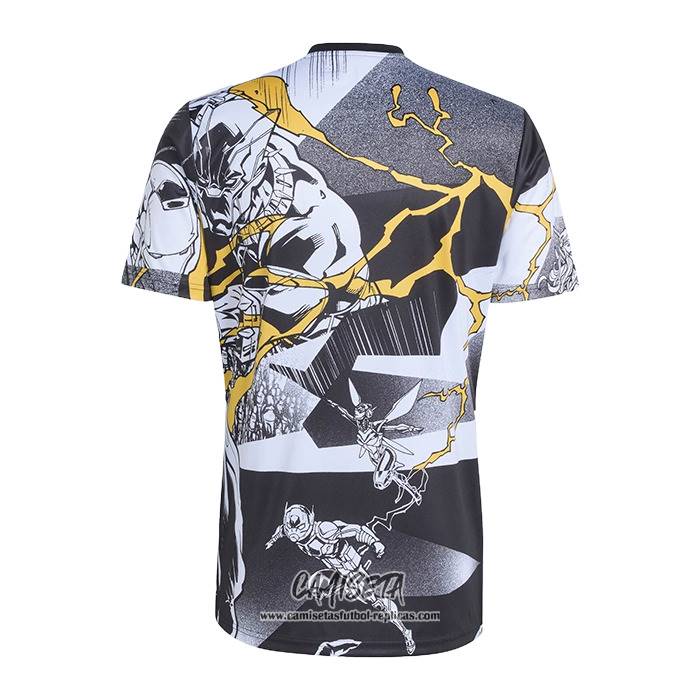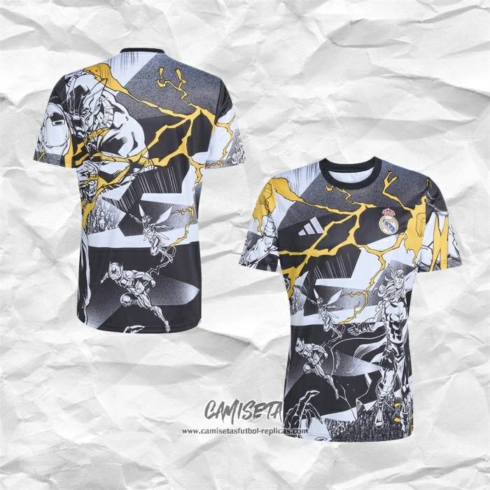 Camiseta Pre Partido del Real Madrid 2025-2026 Negro Blanco esta confeccionada con un tejido transpirable que repele el sudor para mantenerte fresco, seco y cómodo dentro y fuera de la cancha. Una replicas camisetas futbol que puedes usar a diario, jugar al fútbol o disfrutar de los partidos con tus amigos sin problemas.