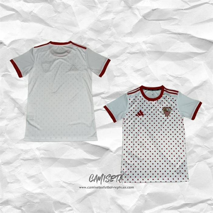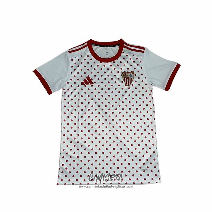 Camiseta Pre Partido del Sevilla 2025-2026 Blanco esta confeccionada con un tejido transpirable que repele el sudor para mantenerte fresco, seco y cómodo dentro y fuera de la cancha. Una replicas camisetas futbol que puedes usar a diario, jugar al fútbol o disfrutar de los partidos con tus amigos sin problemas.