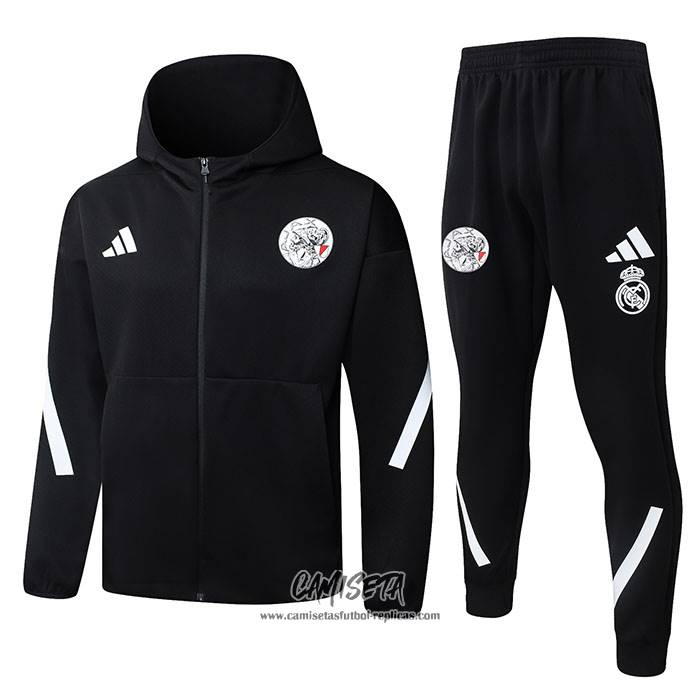 Chandal con Capucha del Ajax 2025-2026 Negro esta confeccionada con un tejido transpirable que repele el sudor para mantenerte fresco, seco y cómodo dentro y fuera de la cancha. Una replicas camisetas futbol que puedes usar a diario, jugar al fútbol o disfrutar de los partidos con tus amigos sin problemas.