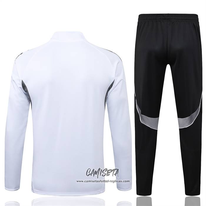 Chandal de Chaqueta del Alemania 2025-2026 Nino Blanco esta confeccionada con un tejido transpirable que repele el sudor para mantenerte fresco, seco y cómodo dentro y fuera de la cancha. Una replicas camisetas futbol que puedes usar a diario, jugar al fútbol o disfrutar de los partidos con tus amigos sin problemas.