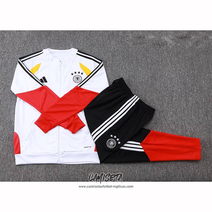 Chandal de Chaqueta del Alemania 2025-2026 Nino Blanco esta confeccionada con un tejido transpirable que repele el sudor para mantenerte fresco, seco y cómodo dentro y fuera de la cancha. Una replicas camisetas futbol que puedes usar a diario, jugar al fútbol o disfrutar de los partidos con tus amigos sin problemas.