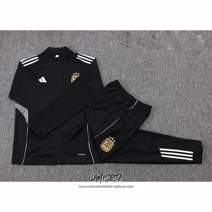 Chandal de Chaqueta del Argentina 2025-2026 Negro esta confeccionada con un tejido transpirable que repele el sudor para mantenerte fresco, seco y cómodo dentro y fuera de la cancha. Una replicas camisetas futbol que puedes usar a diario, jugar al fútbol o disfrutar de los partidos con tus amigos sin problemas.