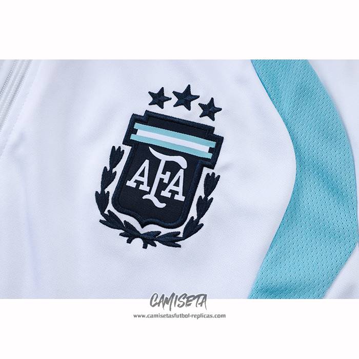 Chandal de Chaqueta del Argentina 2025-2026 Nino Blanco esta confeccionada con un tejido transpirable que repele el sudor para mantenerte fresco, seco y cómodo dentro y fuera de la cancha. Una replicas camisetas futbol que puedes usar a diario, jugar al fútbol o disfrutar de los partidos con tus amigos sin problemas.