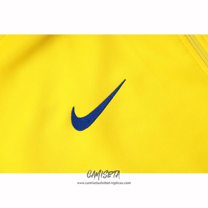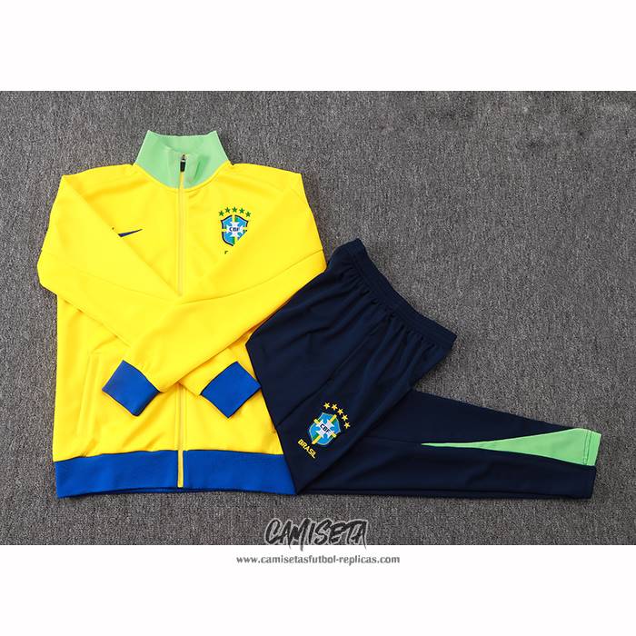 Chandal de Chaqueta del Brasil 2025-2026 Nino Amarillo esta confeccionada con un tejido transpirable que repele el sudor para mantenerte fresco, seco y cómodo dentro y fuera de la cancha. Una replicas camisetas futbol que puedes usar a diario, jugar al fútbol o disfrutar de los partidos con tus amigos sin problemas.