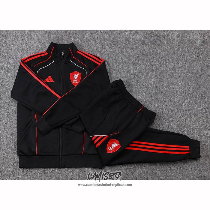 Chandal de Chaqueta del Liverpool 2025-2026 Nino Negro esta confeccionada con un tejido transpirable que repele el sudor para mantenerte fresco, seco y cómodo dentro y fuera de la cancha. Una replicas camisetas futbol que puedes usar a diario, jugar al fútbol o disfrutar de los partidos con tus amigos sin problemas.