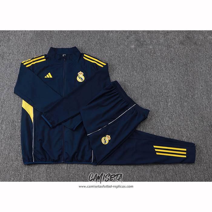 Chandal de Chaqueta del Real Madrid 2025-2026 Nino Amarillo Azul esta confeccionada con un tejido transpirable que repele el sudor para mantenerte fresco, seco y cómodo dentro y fuera de la cancha. Una replicas camisetas futbol que puedes usar a diario, jugar al fútbol o disfrutar de los partidos con tus amigos sin problemas.