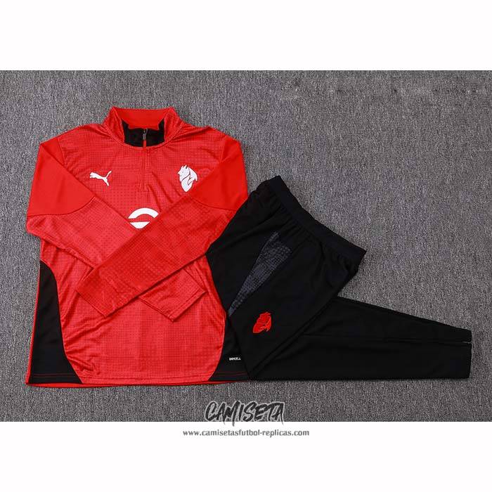 Chandal de Sudadera del AC Milan 2025-2026 Nino Rojo esta confeccionada con un tejido transpirable que repele el sudor para mantenerte fresco, seco y cómodo dentro y fuera de la cancha. Una replicas camisetas futbol que puedes usar a diario, jugar al fútbol o disfrutar de los partidos con tus amigos sin problemas.