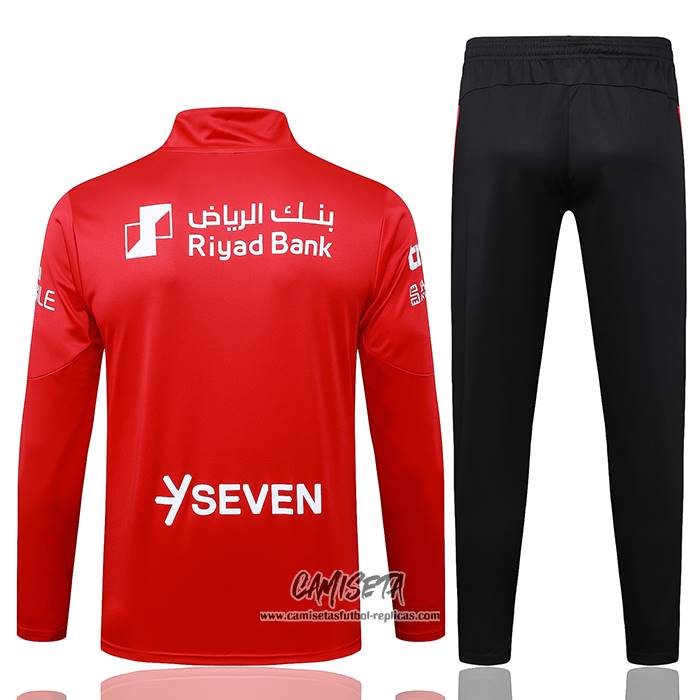 Chandal de Sudadera del Al Hilal 2025-2026 Nino Rojo esta confeccionada con un tejido transpirable que repele el sudor para mantenerte fresco, seco y cómodo dentro y fuera de la cancha. Una replicas camisetas futbol que puedes usar a diario, jugar al fútbol o disfrutar de los partidos con tus amigos sin problemas.