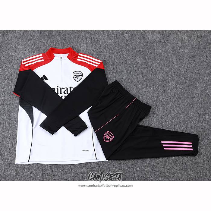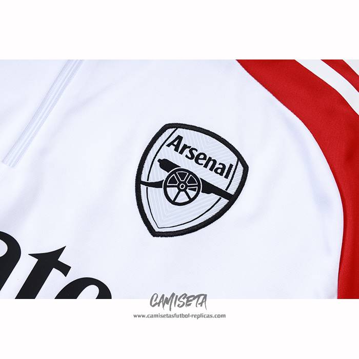 Chandal de Sudadera del Arsenal 2025-2026 Nino Blanco esta confeccionada con un tejido transpirable que repele el sudor para mantenerte fresco, seco y cómodo dentro y fuera de la cancha. Una replicas camisetas futbol que puedes usar a diario, jugar al fútbol o disfrutar de los partidos con tus amigos sin problemas.