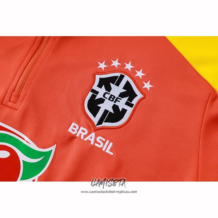 Chandal de Sudadera del Brasil 2025-2026 Nino Naranja esta confeccionada con un tejido transpirable que repele el sudor para mantenerte fresco, seco y cómodo dentro y fuera de la cancha. Una replicas camisetas futbol que puedes usar a diario, jugar al fútbol o disfrutar de los partidos con tus amigos sin problemas.