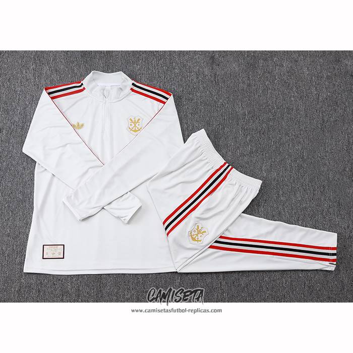 Chandal de Sudadera del Flamengo 2025-2026 Nino Blanco esta confeccionada con un tejido transpirable que repele el sudor para mantenerte fresco, seco y cómodo dentro y fuera de la cancha. Una replicas camisetas futbol que puedes usar a diario, jugar al fútbol o disfrutar de los partidos con tus amigos sin problemas.