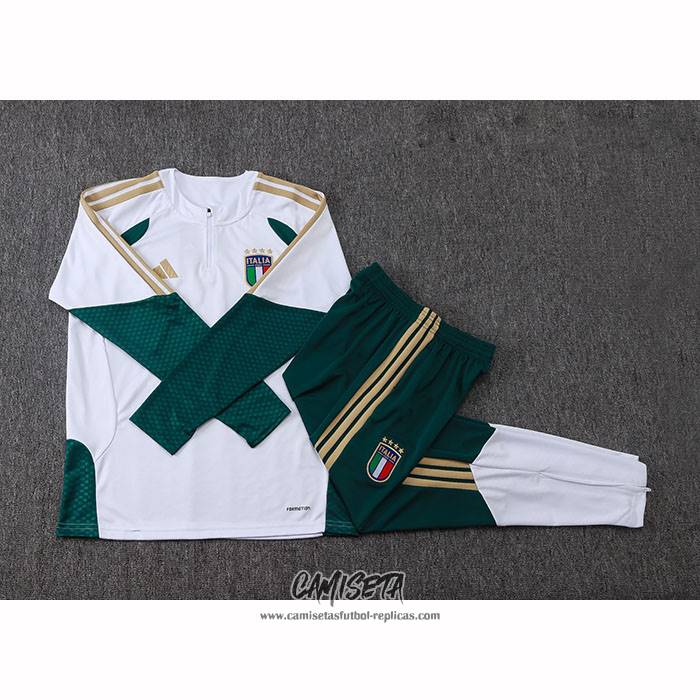 Chandal de Sudadera del Italia 2025-2026 Nino Blanco esta confeccionada con un tejido transpirable que repele el sudor para mantenerte fresco, seco y cómodo dentro y fuera de la cancha. Una replicas camisetas futbol que puedes usar a diario, jugar al fútbol o disfrutar de los partidos con tus amigos sin problemas.