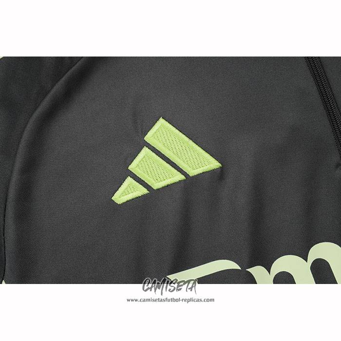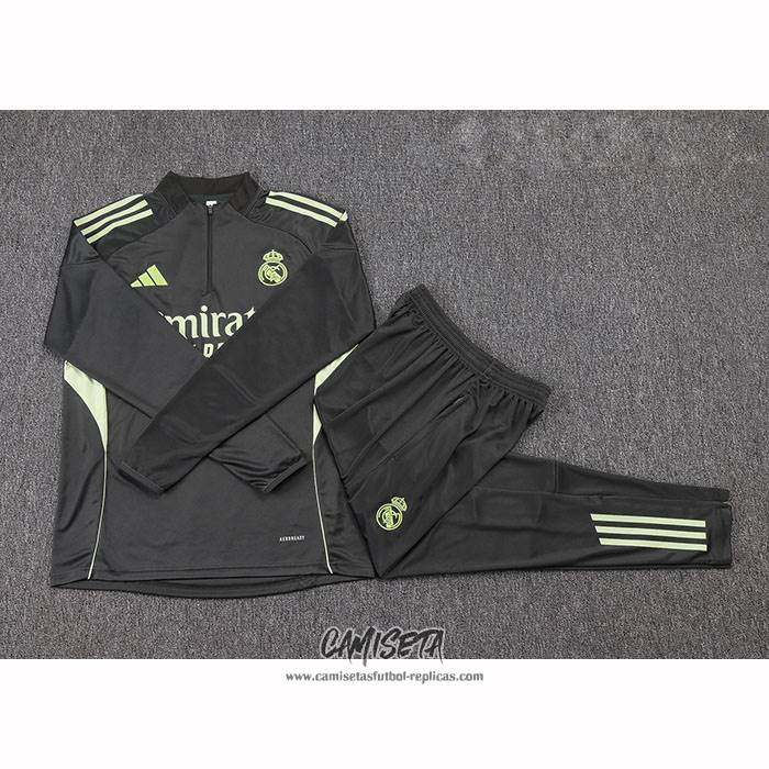 Chandal de Sudadera del Real Madrid 2025-2026 Nino Gris Verde esta confeccionada con un tejido transpirable que repele el sudor para mantenerte fresco, seco y cómodo dentro y fuera de la cancha. Una replicas camisetas futbol que puedes usar a diario, jugar al fútbol o disfrutar de los partidos con tus amigos sin problemas.