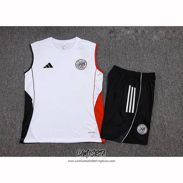 Chandal del Ajax 2025-2026 Sin Mangas Blanco esta confeccionada con un tejido transpirable que repele el sudor para mantenerte fresco, seco y cómodo dentro y fuera de la cancha. Una replicas camisetas futbol que puedes usar a diario, jugar al fútbol o disfrutar de los partidos con tus amigos sin problemas.