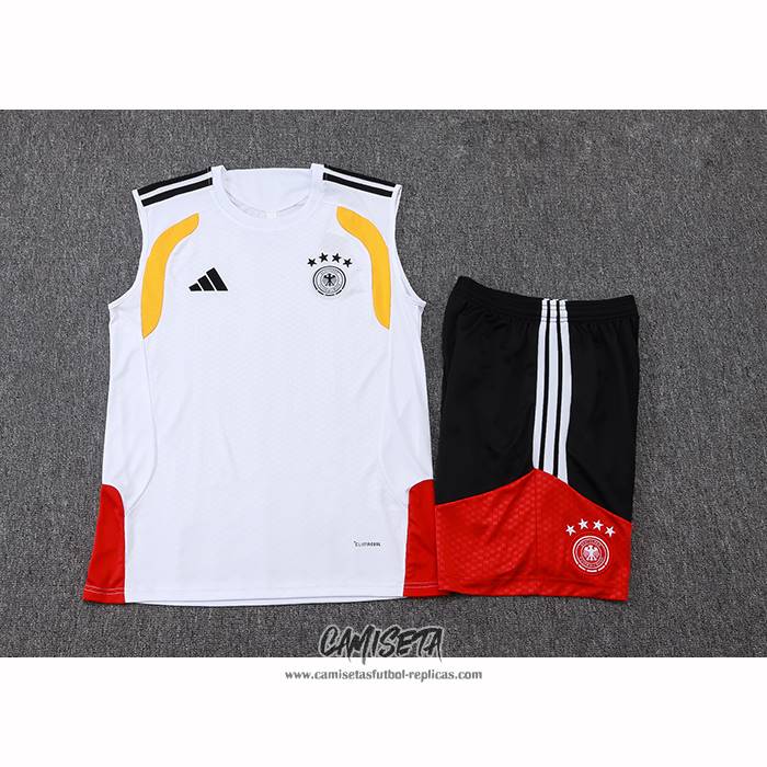 Chandal del Alemania 2025-2026 Sin Mangas Blanco esta confeccionada con un tejido transpirable que repele el sudor para mantenerte fresco, seco y cómodo dentro y fuera de la cancha. Una replicas camisetas futbol que puedes usar a diario, jugar al fútbol o disfrutar de los partidos con tus amigos sin problemas.