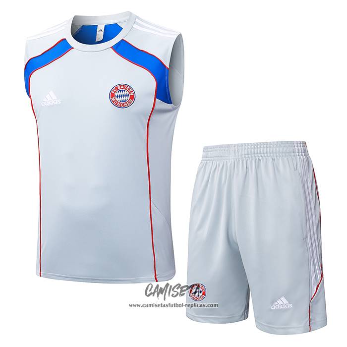 Chandal del Bayern Munich 2025-2026 Sin Mangas Gris esta confeccionada con un tejido transpirable que repele el sudor para mantenerte fresco, seco y cómodo dentro y fuera de la cancha. Una replicas camisetas futbol que puedes usar a diario, jugar al fútbol o disfrutar de los partidos con tus amigos sin problemas.