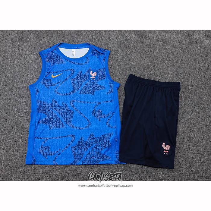 Chandal del Francia 2025-2026 Sin Mangas Azul esta confeccionada con un tejido transpirable que repele el sudor para mantenerte fresco, seco y cómodo dentro y fuera de la cancha. Una replicas camisetas futbol que puedes usar a diario, jugar al fútbol o disfrutar de los partidos con tus amigos sin problemas.