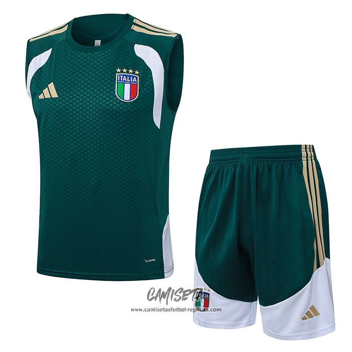 Chandal del Italia 2025-2026 Sin Mangas Verde esta confeccionada con un tejido transpirable que repele el sudor para mantenerte fresco, seco y cómodo dentro y fuera de la cancha. Una replicas camisetas futbol que puedes usar a diario, jugar al fútbol o disfrutar de los partidos con tus amigos sin problemas.