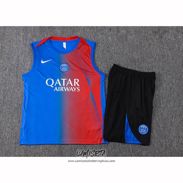 Chandal del Paris Saint-Germain 2025-2026 Sin Mangas Azul Rojo esta confeccionada con un tejido transpirable que repele el sudor para mantenerte fresco, seco y cómodo dentro y fuera de la cancha. Una replicas camisetas futbol que puedes usar a diario, jugar al fútbol o disfrutar de los partidos con tus amigos sin problemas.