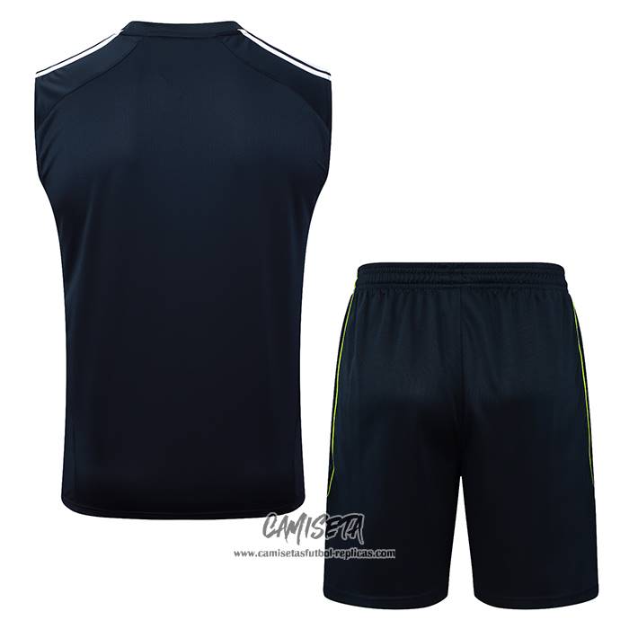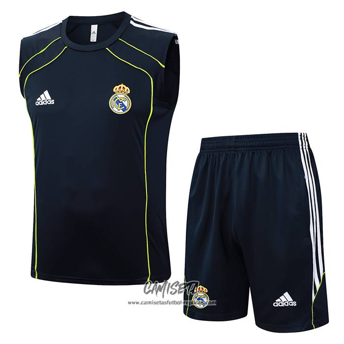 Chandal del Real Madrid 2025-2026 Sin Mangas Azul esta confeccionada con un tejido transpirable que repele el sudor para mantenerte fresco, seco y cómodo dentro y fuera de la cancha. Una replicas camisetas futbol que puedes usar a diario, jugar al fútbol o disfrutar de los partidos con tus amigos sin problemas.