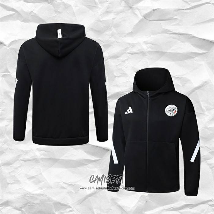 Chaqueta con Capucha del Ajax 2025-2026 Negro esta confeccionada con un tejido transpirable que repele el sudor para mantenerte fresco, seco y cómodo dentro y fuera de la cancha. Una replicas camisetas futbol que puedes usar a diario, jugar al fútbol o disfrutar de los partidos con tus amigos sin problemas.