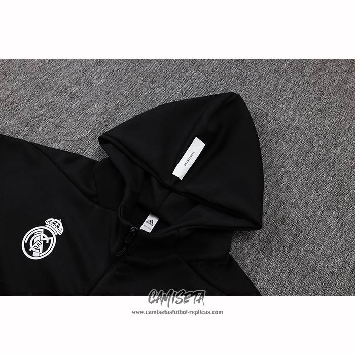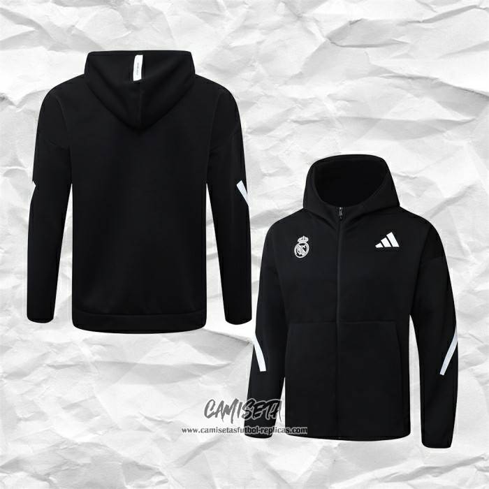 Chaqueta con Capucha del Real Madrid 2025-2026 Negro esta confeccionada con un tejido transpirable que repele el sudor para mantenerte fresco, seco y cómodo dentro y fuera de la cancha. Una replicas camisetas futbol que puedes usar a diario, jugar al fútbol o disfrutar de los partidos con tus amigos sin problemas.