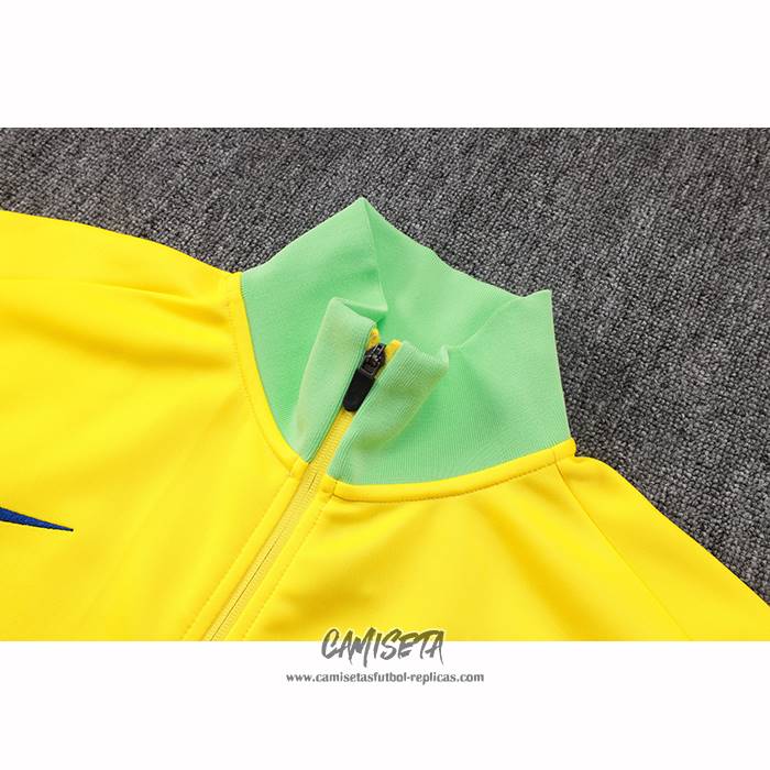 Chaqueta del Brasil 2025-2026 Amarillo esta confeccionada con un tejido transpirable que repele el sudor para mantenerte fresco, seco y cómodo dentro y fuera de la cancha. Una replicas camisetas futbol que puedes usar a diario, jugar al fútbol o disfrutar de los partidos con tus amigos sin problemas.