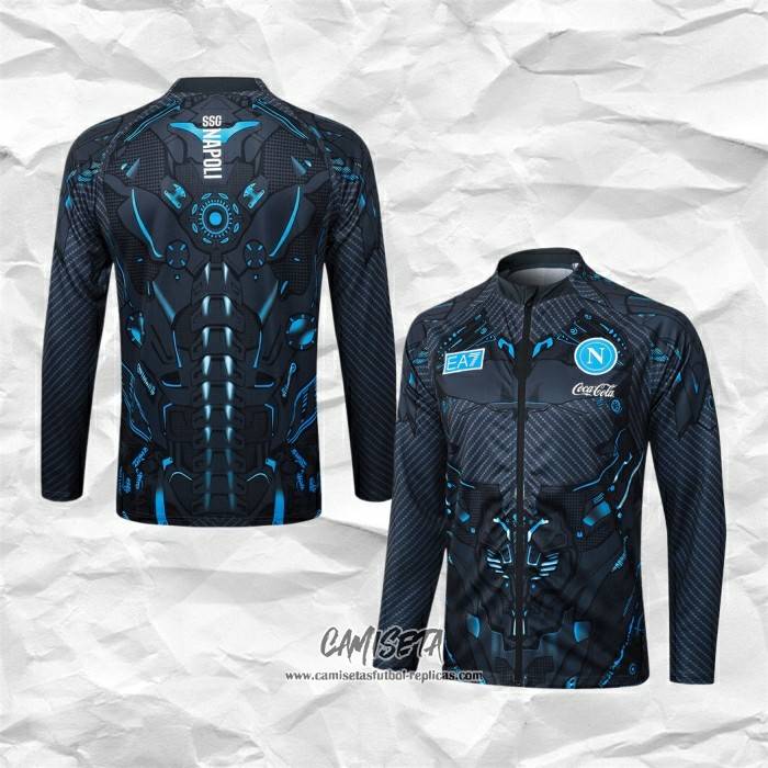Chaqueta del Napoli 2025-2026 Negro esta confeccionada con un tejido transpirable que repele el sudor para mantenerte fresco, seco y cómodo dentro y fuera de la cancha. Una replicas camisetas futbol que puedes usar a diario, jugar al fútbol o disfrutar de los partidos con tus amigos sin problemas.