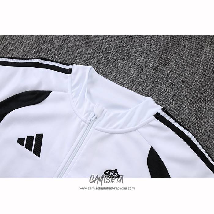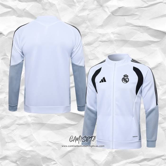 Chaqueta del Real Madrid 2026-2027 Blanco esta confeccionada con un tejido transpirable que repele el sudor para mantenerte fresco, seco y cómodo dentro y fuera de la cancha. Una replicas camisetas futbol que puedes usar a diario, jugar al fútbol o disfrutar de los partidos con tus amigos sin problemas.