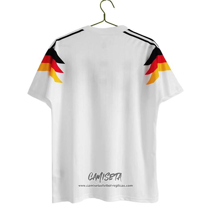 Primera Camiseta Alemania Retro 1990 esta confeccionada con un tejido transpirable que repele el sudor para mantenerte fresco, seco y cómodo dentro y fuera de la cancha. Una replicas camisetas futbol que puedes usar a diario, jugar al fútbol o disfrutar de los partidos con tus amigos sin problemas.