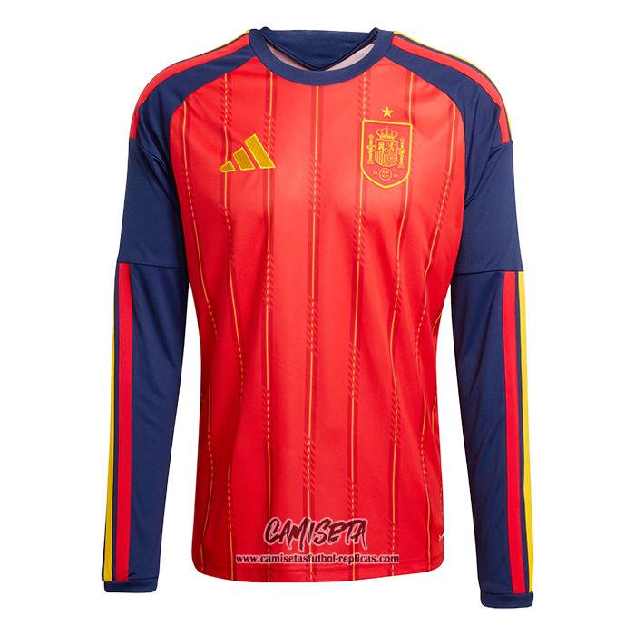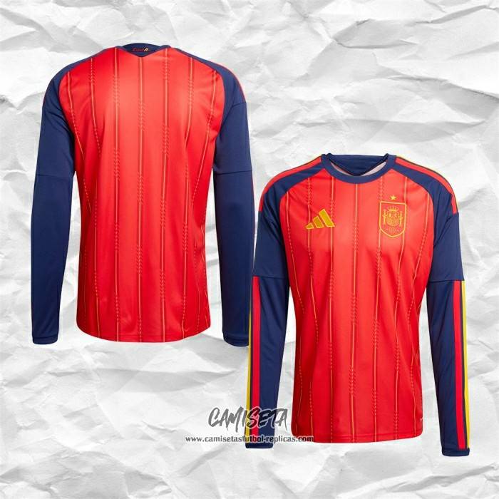 Primera Camiseta Espana 2026 Manga Larga esta confeccionada con un tejido transpirable que repele el sudor para mantenerte fresco, seco y cómodo dentro y fuera de la cancha. Una replicas camisetas futbol que puedes usar a diario, jugar al fútbol o disfrutar de los partidos con tus amigos sin problemas.