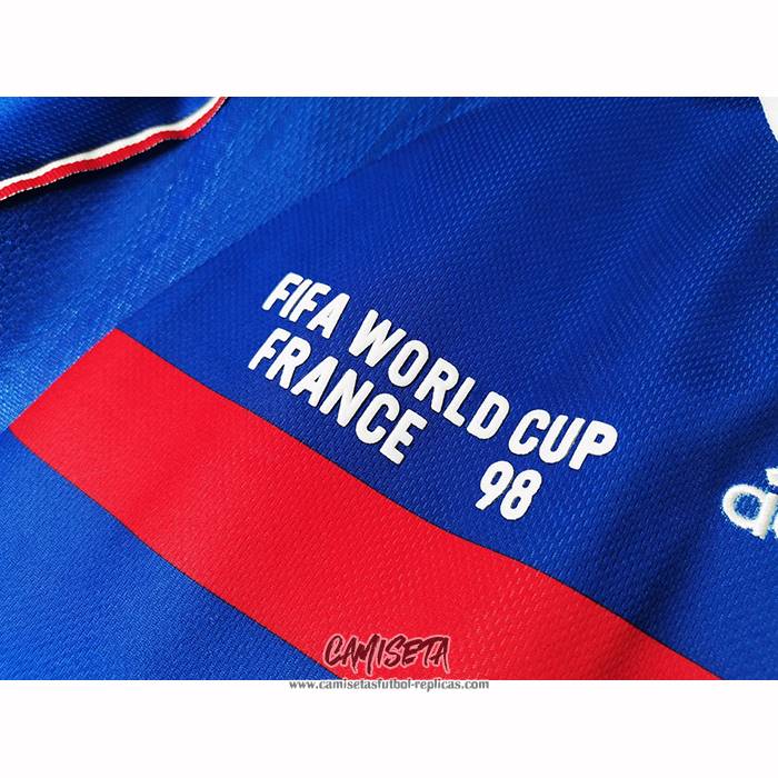 Primera Camiseta Francia Retro 1998 esta confeccionada con un tejido transpirable que repele el sudor para mantenerte fresco, seco y cómodo dentro y fuera de la cancha. Una replicas camisetas futbol que puedes usar a diario, jugar al fútbol o disfrutar de los partidos con tus amigos sin problemas.