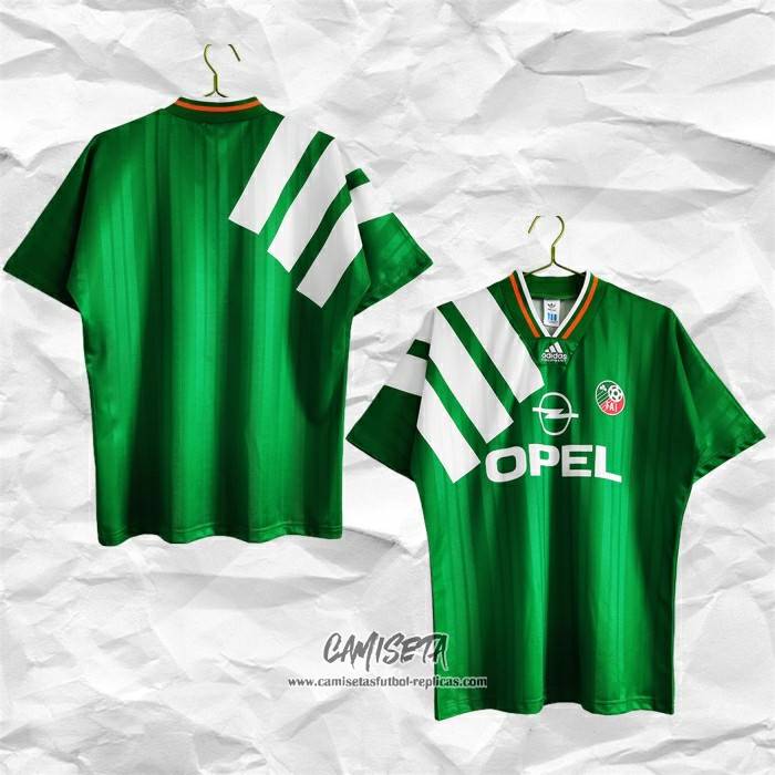 Primera Camiseta Irlanda Retro 92-94 esta confeccionada con un tejido transpirable que repele el sudor para mantenerte fresco, seco y cómodo dentro y fuera de la cancha. Una replicas camisetas futbol que puedes usar a diario, jugar al fútbol o disfrutar de los partidos con tus amigos sin problemas.