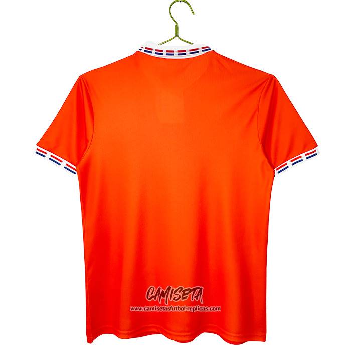 Primera Camiseta Paises Bajos Retro 1996 esta confeccionada con un tejido transpirable que repele el sudor para mantenerte fresco, seco y cómodo dentro y fuera de la cancha. Una replicas camisetas futbol que puedes usar a diario, jugar al fútbol o disfrutar de los partidos con tus amigos sin problemas.