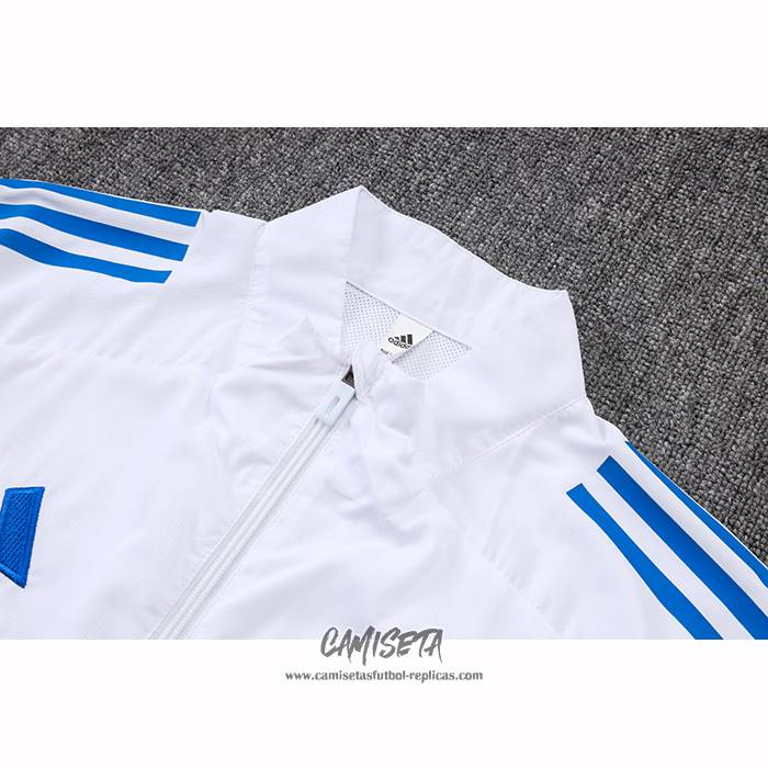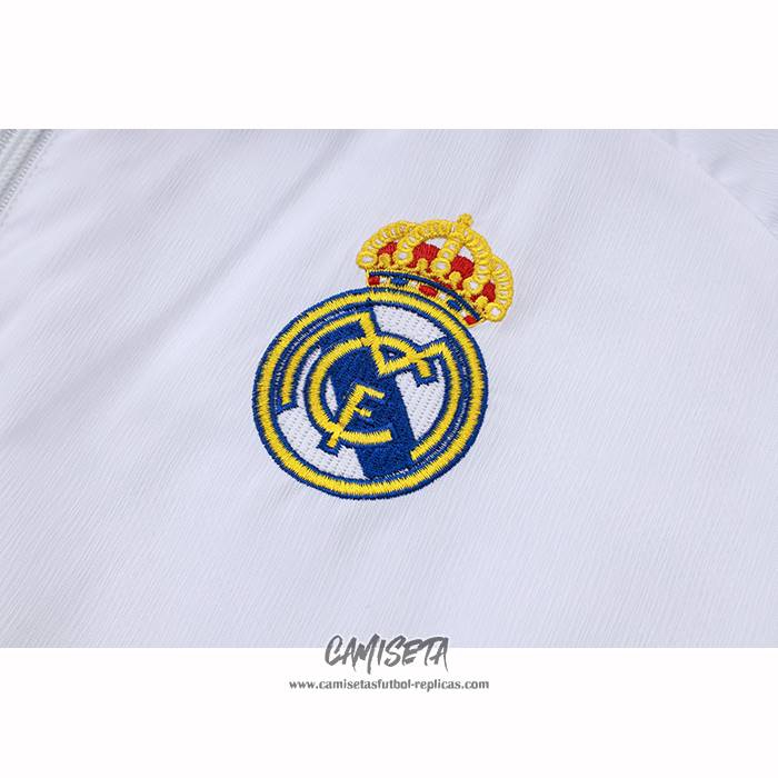 Rompevientos del Real Madrid 2025-2026 Blanco esta confeccionada con un tejido transpirable que repele el sudor para mantenerte fresco, seco y cómodo dentro y fuera de la cancha. Una replicas camisetas futbol que puedes usar a diario, jugar al fútbol o disfrutar de los partidos con tus amigos sin problemas.