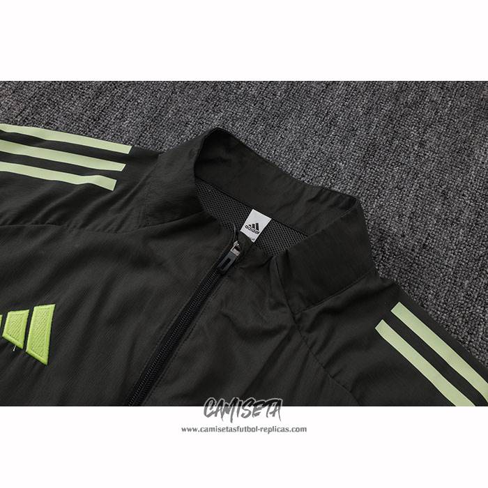 Rompevientos del Real Madrid 2025-2026 Gris Verde esta confeccionada con un tejido transpirable que repele el sudor para mantenerte fresco, seco y cómodo dentro y fuera de la cancha. Una replicas camisetas futbol que puedes usar a diario, jugar al fútbol o disfrutar de los partidos con tus amigos sin problemas.