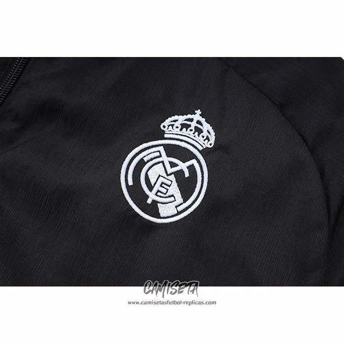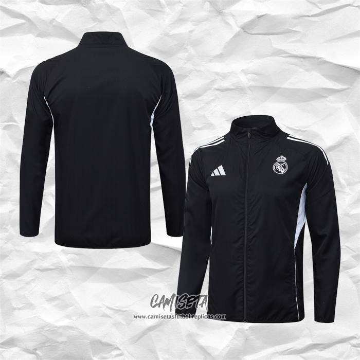 Rompevientos del Real Madrid 2025-2026 Negro esta confeccionada con un tejido transpirable que repele el sudor para mantenerte fresco, seco y cómodo dentro y fuera de la cancha. Una replicas camisetas futbol que puedes usar a diario, jugar al fútbol o disfrutar de los partidos con tus amigos sin problemas.