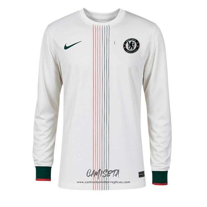 Segunda Camiseta Chelsea 2025-2026 Manga Larga esta confeccionada con un tejido transpirable que repele el sudor para mantenerte fresco, seco y cómodo dentro y fuera de la cancha. Una replicas camisetas futbol que puedes usar a diario, jugar al fútbol o disfrutar de los partidos con tus amigos sin problemas.
