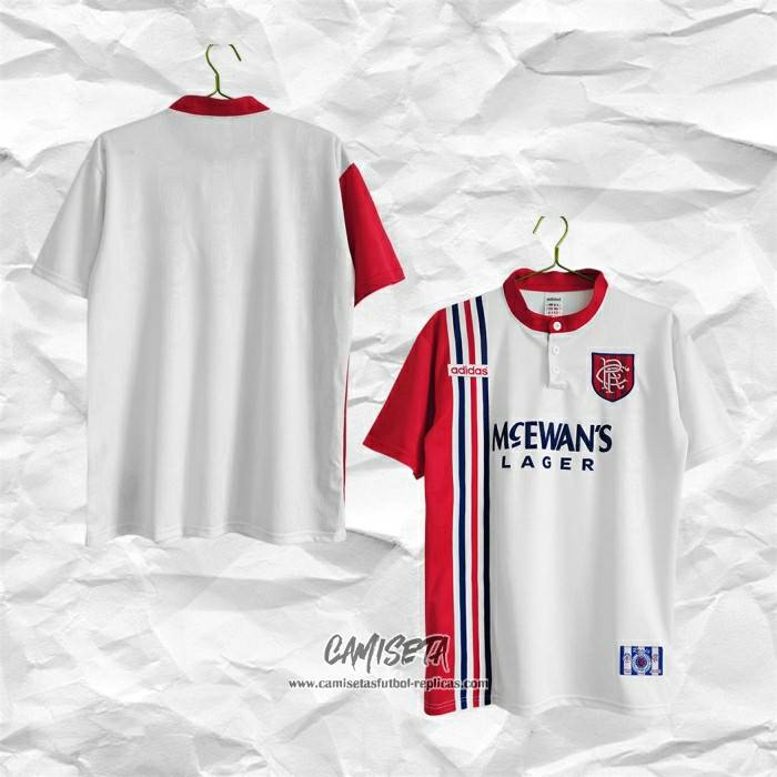 Segunda Camiseta Rangers Retro 96-97 esta confeccionada con un tejido transpirable que repele el sudor para mantenerte fresco, seco y cómodo dentro y fuera de la cancha. Una replicas camisetas futbol que puedes usar a diario, jugar al fútbol o disfrutar de los partidos con tus amigos sin problemas.